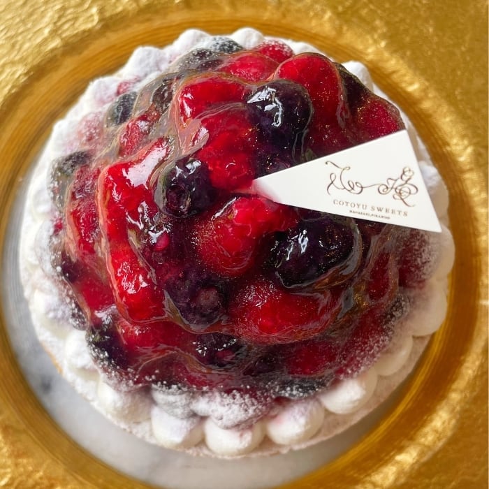 原材料名 ブルーベリー(アメリカ)、ラズベリー、生クリーム、クリームチーズ、粗糖、小麦粉、バター、卵、アーモンドプードル、全粒粉小麦粉、ナパージュ(水飴、砂糖)、苺、レモン汁、粉糖/安定剤(ペクチン)、ゼラチン、酸味料、香料、(一部に乳成分、卵、小麦、ゼラチンを含む)