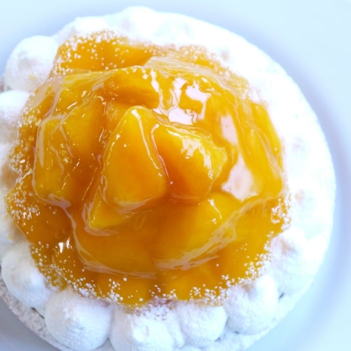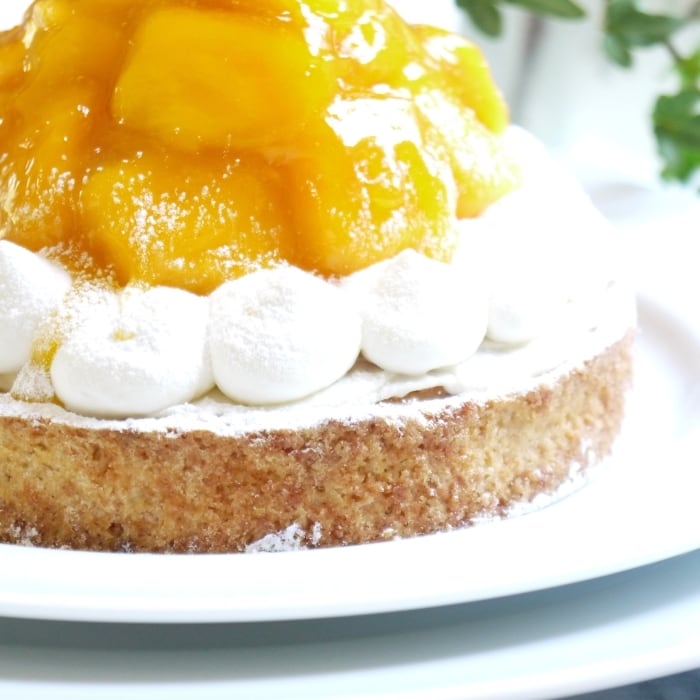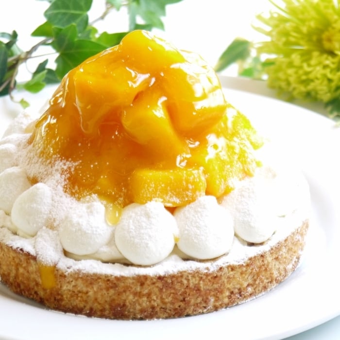 原材料名 マンゴー(タイ産)、生クリーム、クリームチーズ、粗糖、小麦粉、バター、卵、アーモンドプードル、全粒粉小麦粉、ナパージュ(水飴、砂糖) 添加物、安定剤(ペクチン)、ゼラチン、酸味料、香料 (一部に乳成分、卵、小麦を含む)