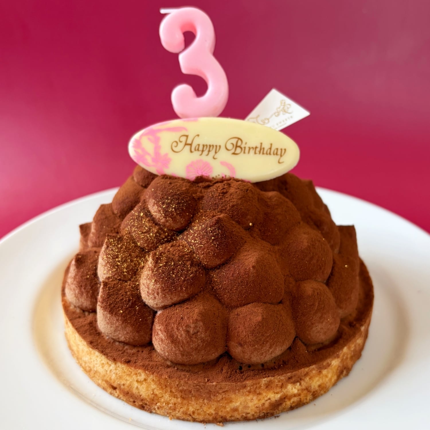 平戸産の粗挽き全粒粉小麦をタルト生地に配合し小麦の旨みと香ばしさを引き出して、ザクッと焼き上げました。しっとりリッチなアーモンド生地に、こだわりのビターチョコをベースにした生チョコレート。クランチチョコを加えて食感もプラスし、チョコレートクリームをたっぷり。ほろ苦ココアパウダーを仕上げにまとい。ゴールドスプレーで華やかに。