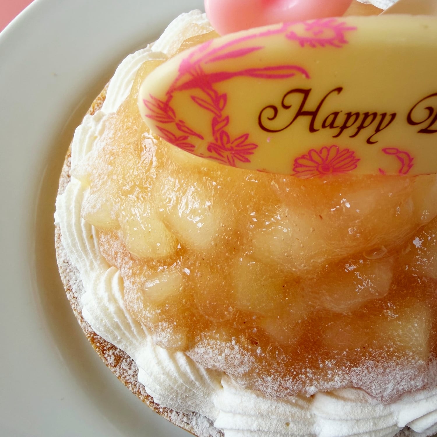 原材料名 桃(アメリカ産)、生クリーム、クリームチーズ、粗糖、小麦粉、バター、卵、アーモンドプードル、全粒粉小麦粉、ナパージュ(水飴、砂糖) 添加物、安定剤(ペクチン)、ゼラチン、酸味料、香料 (一部に乳成分、卵、小麦を含む)