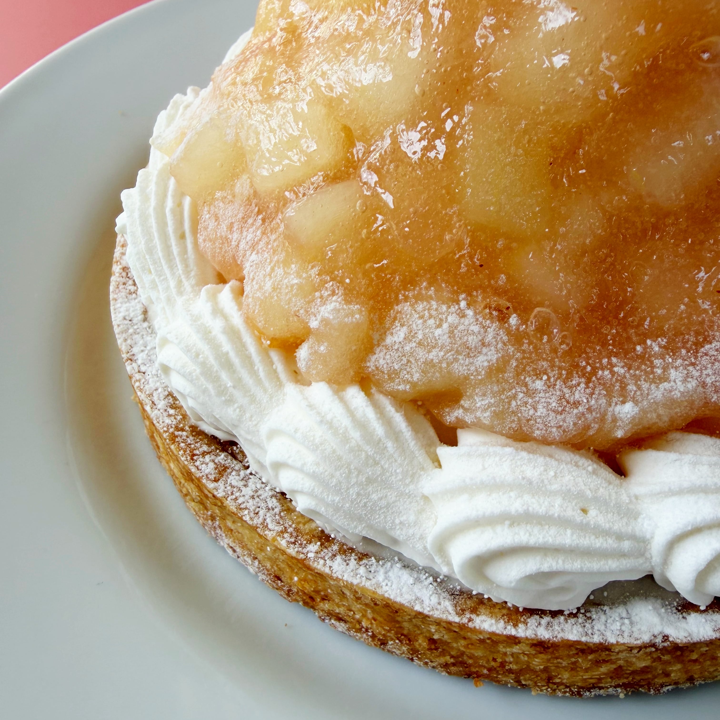 ザクザクのタルトは九州は長崎平戸島育ちの希少な全粒粉小麦を配合。厳選したこだわり素材で作る、バターの風味とアーモンドが香るしっとりとしたクレームダマンドの上には、コクあるチーズムースクリーム。桃色が混じる白桃だけを、贅沢にデコレーションしました。ホワイトと淡い桃色のグラデーションが美しい、手仕事で丁寧に作るおいしさをぜひお召し上がりください。