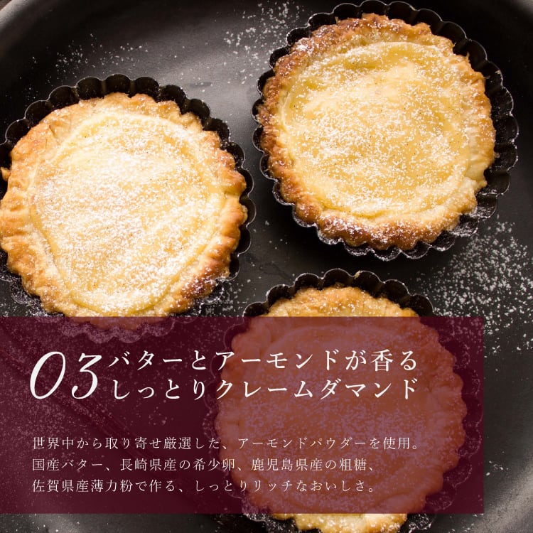 平戸産の粗挽き全粒粉小麦をタルト生地に配合し、小麦の旨みと香ばしさを引き出して、ザクッと焼き上げました。チーズムースクリームとジューシーな大粒ダークチェリーの酸味とコクのマリアージュをお楽しみください。