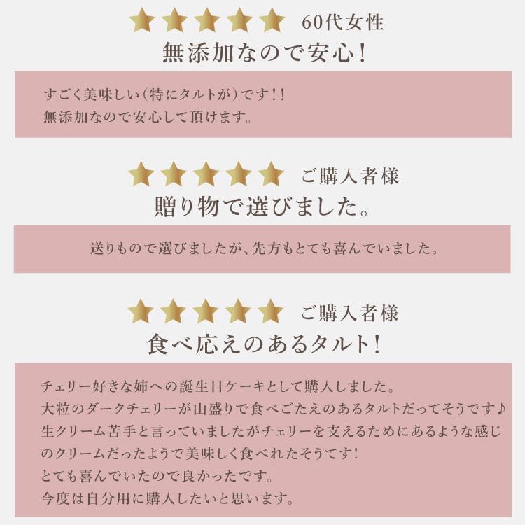 原材料名 ダークチェリー(チリ共和国産)、生クリーム、クリームチーズ、粗糖、小麦粉、バター、卵、アーモンドプードル、全粒粉小麦粉、ナパージュ(水飴、砂糖)、粉糖、添加物、安定剤(ペクチン)、ゼラチン、酸味料、香料 (一部に乳成分、卵、小麦を含む)