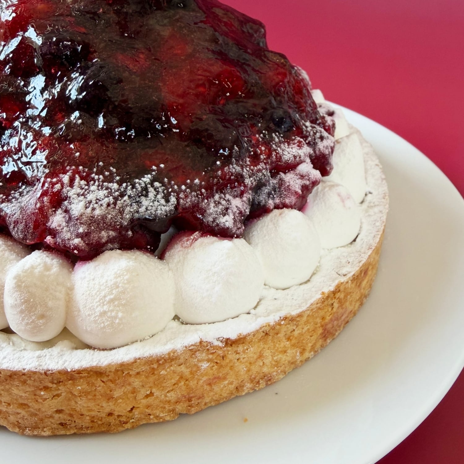 原材料名 ブルーベリー(アメリカ)、ラズベリー、生クリーム、クリームチーズ、粗糖、小麦粉、バター、卵、アーモンドプードル、全粒粉小麦粉、ナパージュ(水飴、砂糖)、苺、レモン汁、粉糖/安定剤(ペクチン)、ゼラチン、酸味料、香料、(一部に乳成分、卵、小麦、ゼラチンを含む)