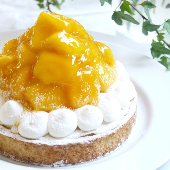 原材料名 マンゴー(タイ産)、生クリーム、クリームチーズ、粗糖、小麦粉、バター、卵、アーモンドプードル、全粒粉小麦粉、ナパージュ(水飴、砂糖) 添加物、安定剤(ペクチン)、ゼラチン、酸味料、香料 (一部に乳成分、卵、小麦を含む)