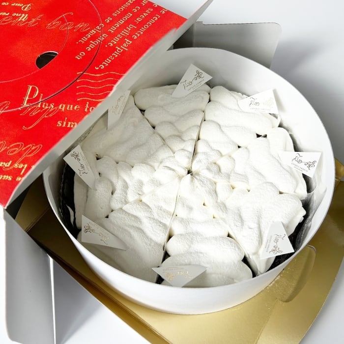冷凍のままだと、濃厚なアイスケーキ冷蔵庫で温度を戻して頂くと、じゅわりととろける半熟ガトーショコラです。