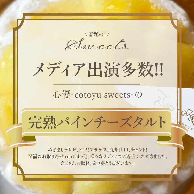 タルト専門店が贈る、完熟パインを贅沢にたっぷり使用した、パインチーズタルト。サクッとした歯触りとジューシーな完熟パインが広がる、上品なスイーツです。