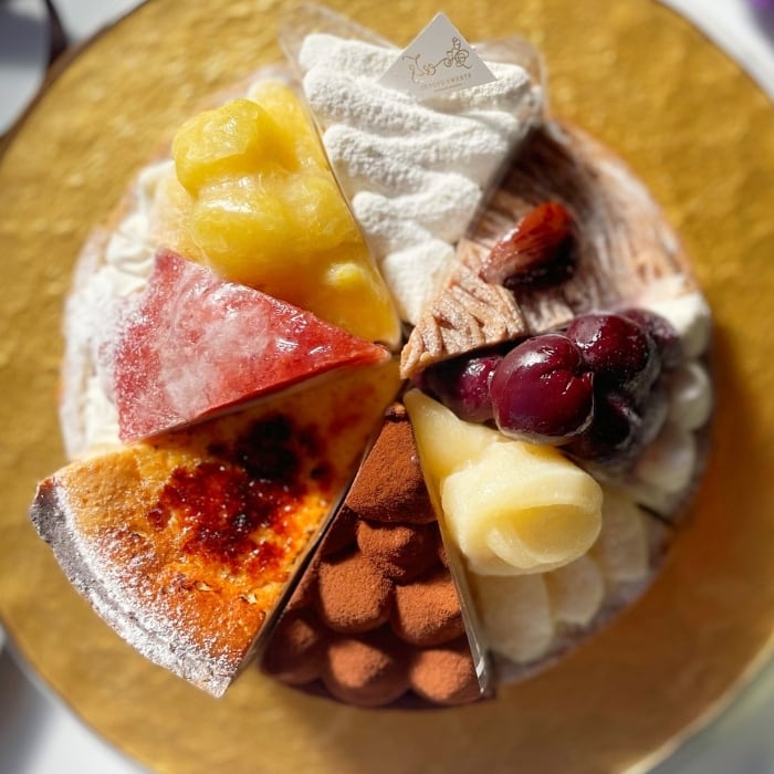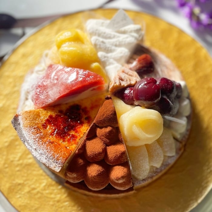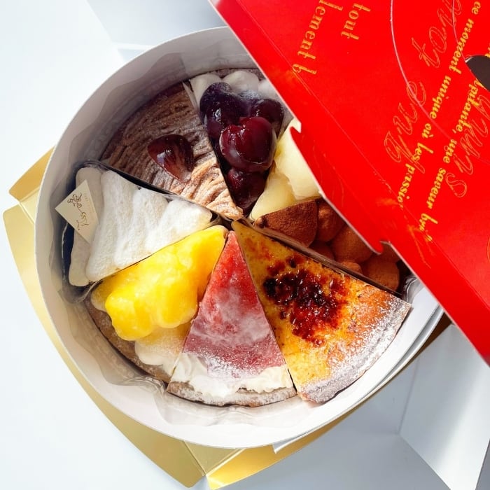 人気の半熟ガトーショコラ、5層で味わうリッチチョコタルト、メディア取材多数のモンブランチーズタルト、ほろ苦キャラメリゼとチーズのケイジャーダチーズタルト、ゆめのか苺のストロベリーチーズタルト、ダークチェリータルト、ラフランスのホワイトローズタルト、完熟マンゴ〜チーズタルト。人気の8種を贅沢にアソートに詰め合わせました。